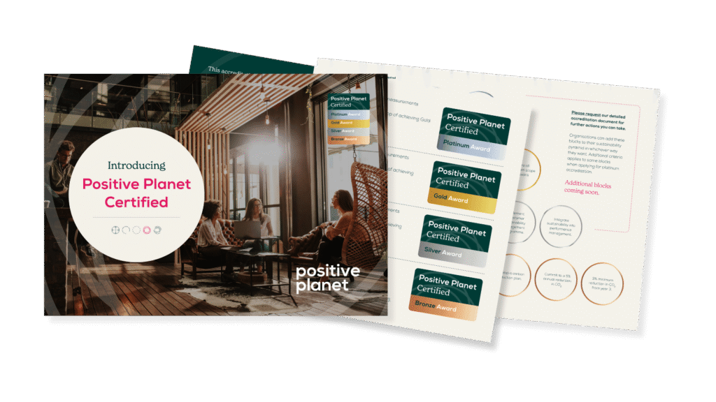 Accreditations are a key way of reinforcing your actions on your journey to Net Zero. Our guide to Positive Planet Certified breaks down our accreditation for responsible brands in greater detail, including a helpful FAQs section.