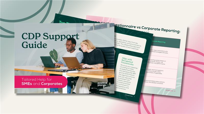 Get CDP-ready with our Support Guide for Corporates and SMEs. Uncover the benefits of disclosure, how to prepare in line with the disclosure process right for your business, and access Positive Planet’s top CDP tips. Download your free copy today.