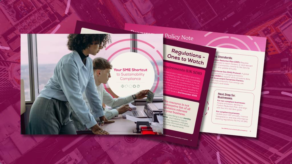 Our SME Shortcut to Sustainability Compliance Guide breaks down key legislation into simple, actionable insights, helping SMEs to comply seamlessly.